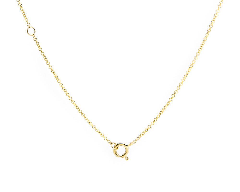 - Chain included with easy adjustable clasp at 16″ and 18″